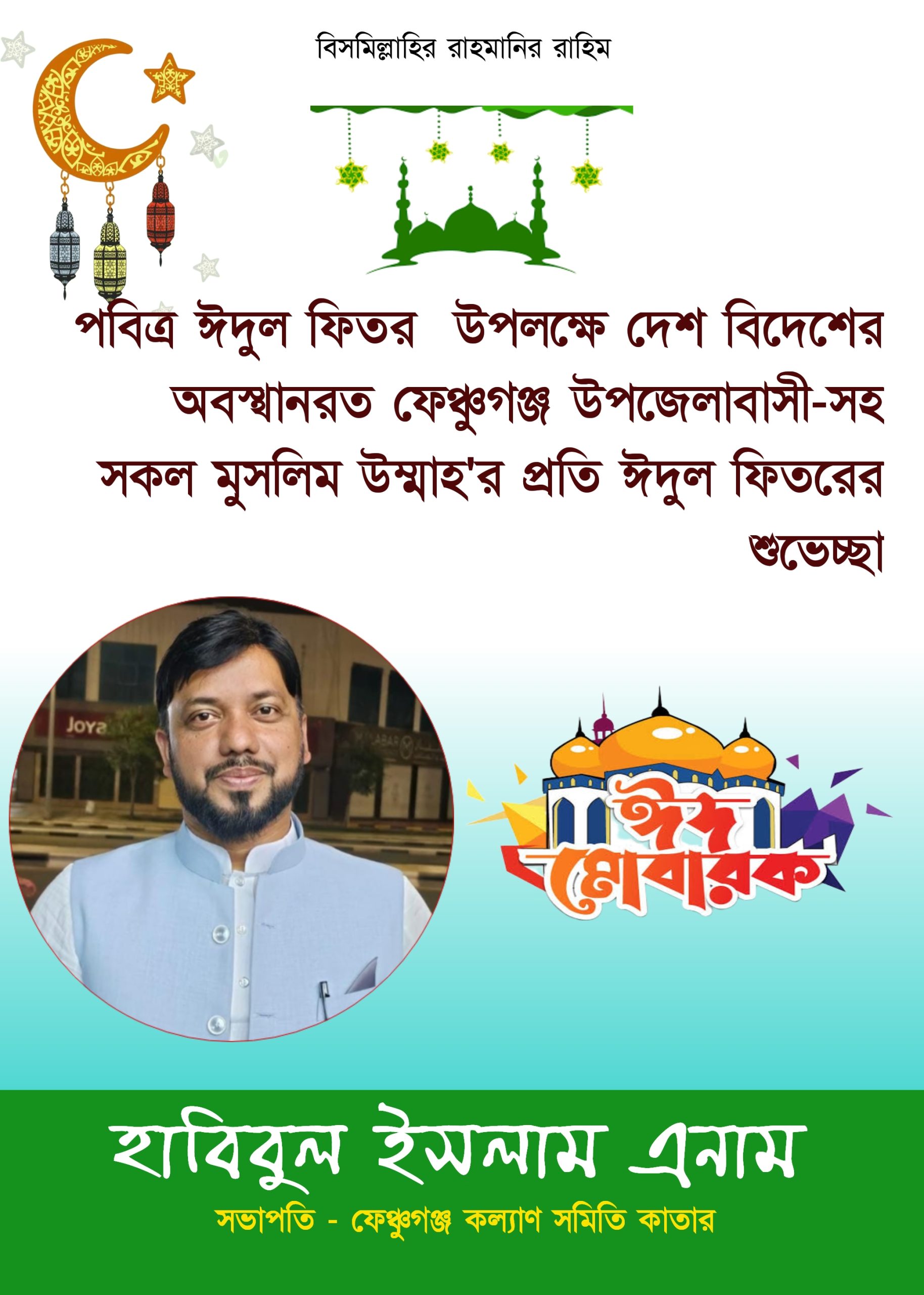 পবিত্র ঈদুল ফিতরের শুভেচ্ছা জানিয়েছেন ফেঞ্চুগঞ্জ কল্যাণ সমিতির সভাপতি হাবিবুল ইসলাম এনাম।