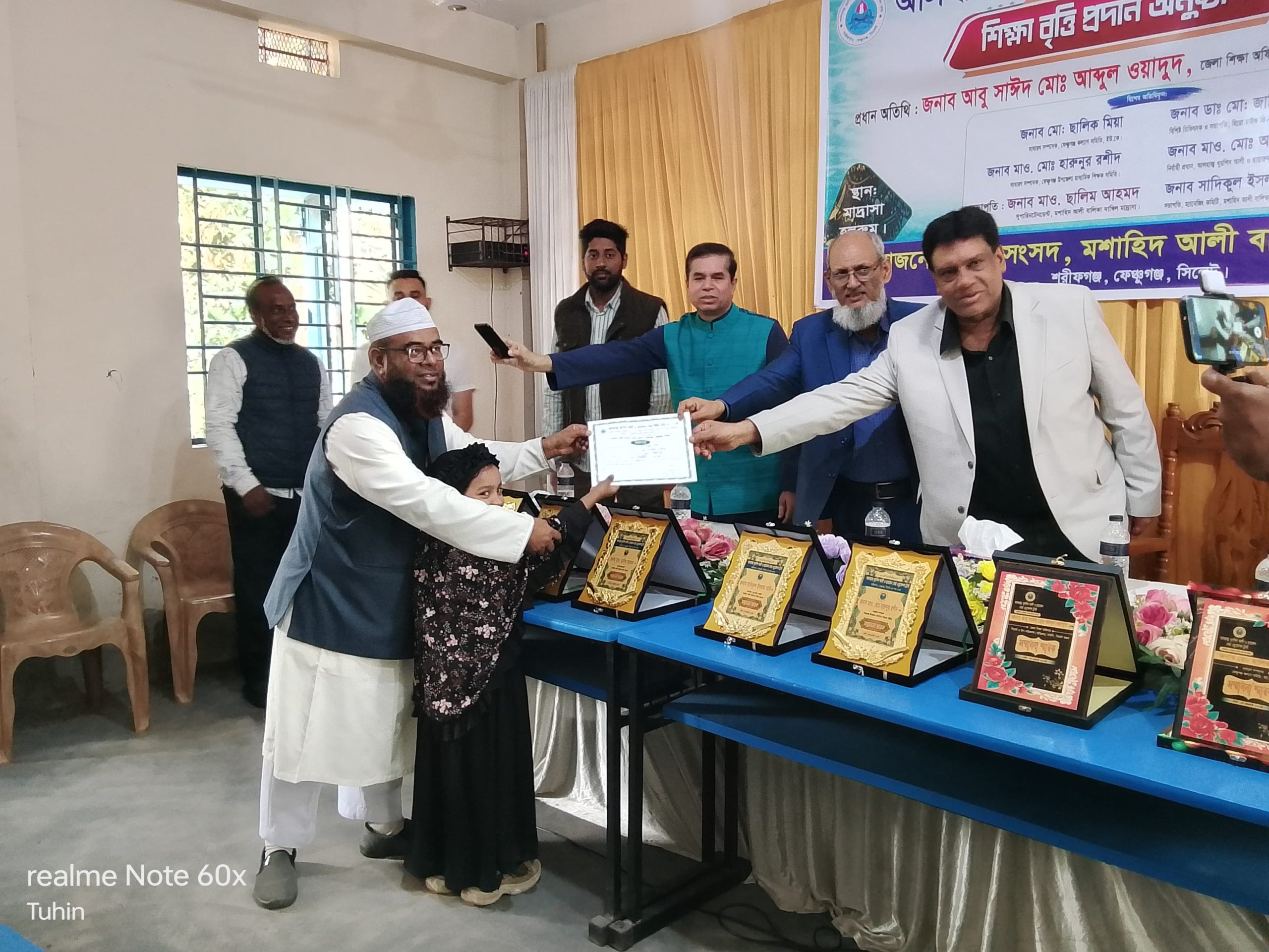 সিলেটের ফেঞ্চুগঞ্জ উপজেলার অন্যতম মহিলা মাদ্রাসা মশাহিদ আলী বালিকা দাখিল মাদ্রাসায় আলহাজ্ব খুরশিদ আলী ও ছায়ারুন্নেছা বৃত্তি প্রদান অনুষ্ঠানে প্রধান অতিথির বক্তব্য রাখেন সিলেট জেলা শিক্ষা অফিসার ও উপ পরিদর্শক আবু সাঈদ মো. আব্দুল ওয়াদুদ। তিনি বলেন- যেখানে শিক্ষার বিন্যাস আছে সেখানে আলোকিত গুণীজন জন্ম নিবে। পাশাপাশি মাদ্রাসা শিক্ষা অত্যন্ত জরুরি প্রয়োজন বলে আমি মনে করি।