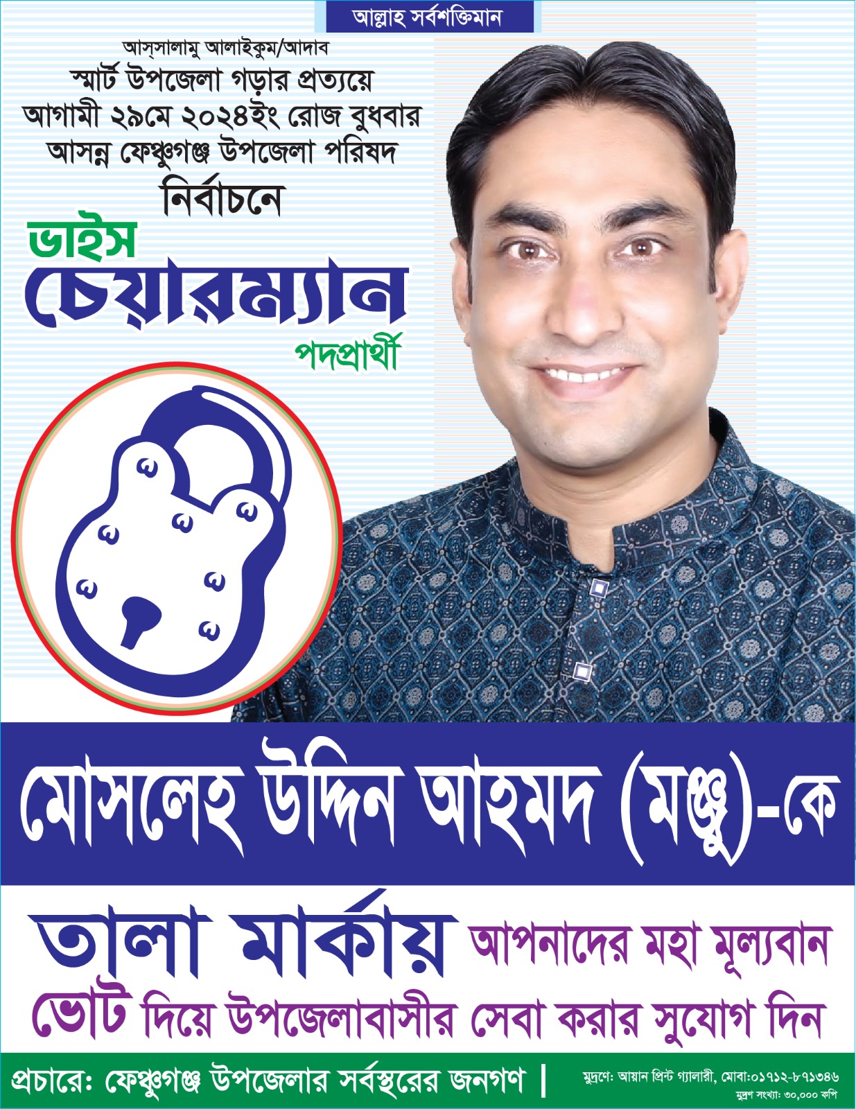 ‘তালা’ প্রতীকে ভাইস চেয়ারম্যান প্রার্থী মোসলেহ উদ্দিন আহমদ মঞ্জু’র আহবান