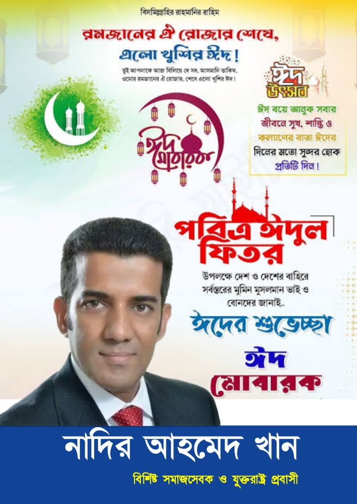 পবিত্র ঈদুল ফিতরের শুভেচ্ছা জানিয়েছেন যুক্তরাষ্ট্র প্রবাসী কমিউনিটি নেতা ‘নাদির আহমদ খান’