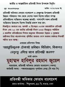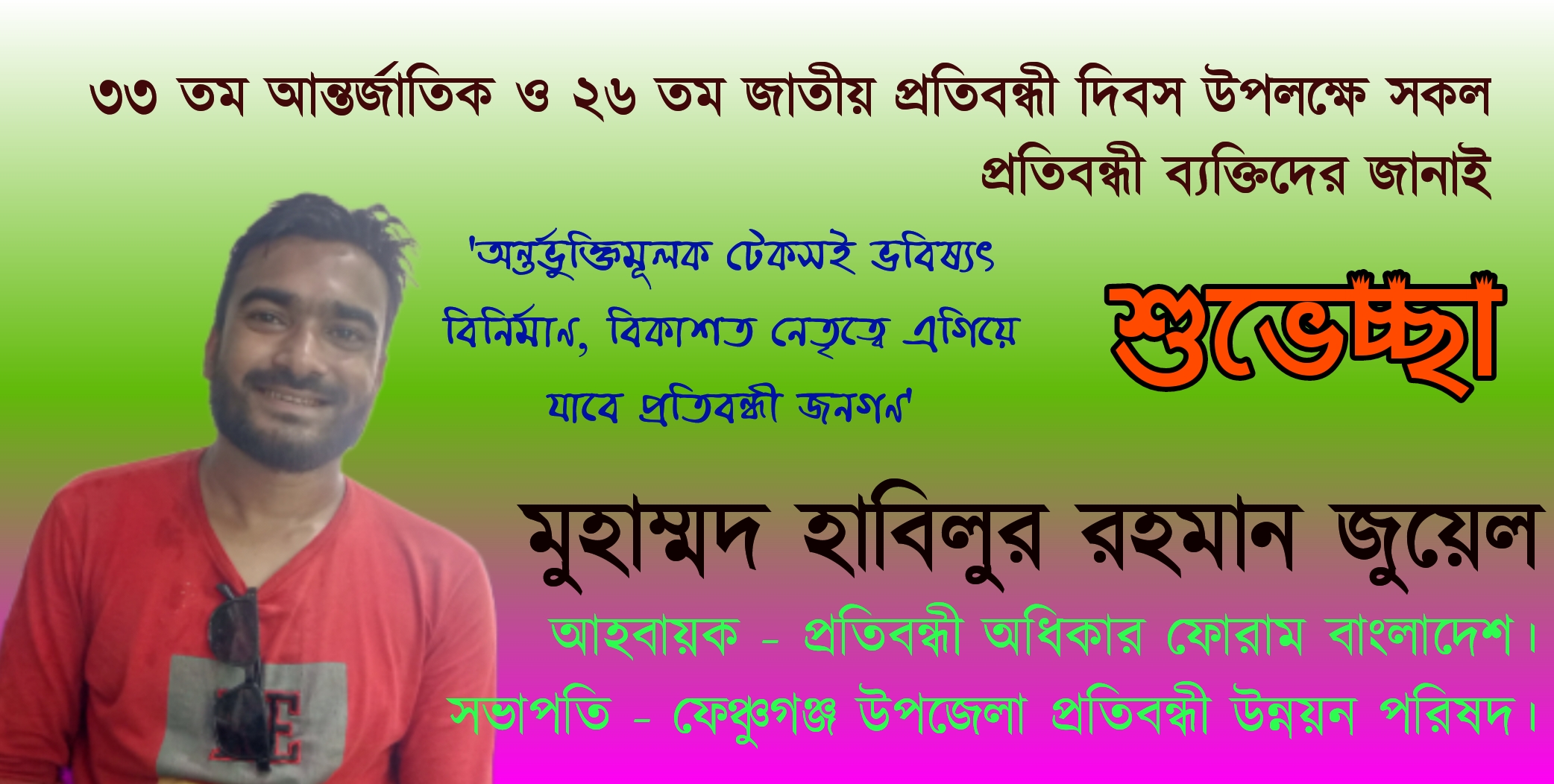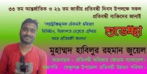 সর্বশেষ প্রতিবন্ধী অধিকার ফোরাম বাংলাদেশের পক্ষ থেকে দেশের সকল প্রতিবন্ধী ব্যক্তিদের শুভেচ্ছা জানাই।