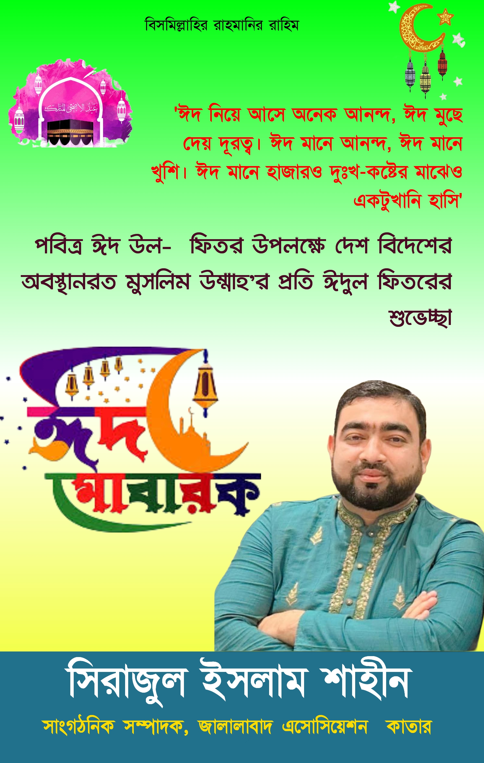 সেই কামনায় সকল প্রবাসী বাংলাদেশীদের ঈদের শুভেচ্ছা জানিয়েছেন কাতার প্রবাসী সিরাজুল ইসলাম শাহীন।