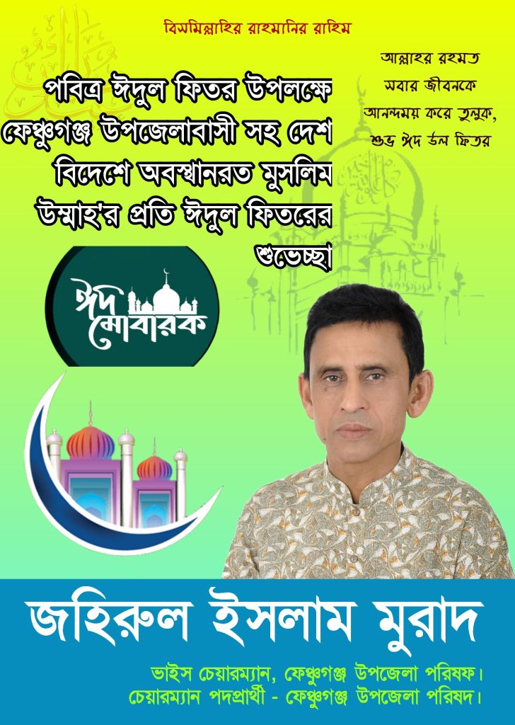 ফেঞ্চুগঞ্জবাসীকে পবিত্র ঈদুল ফিতরের শুভেচ্ছা জানিয়েছেন জহিরুল ইসলাম মুরাদ