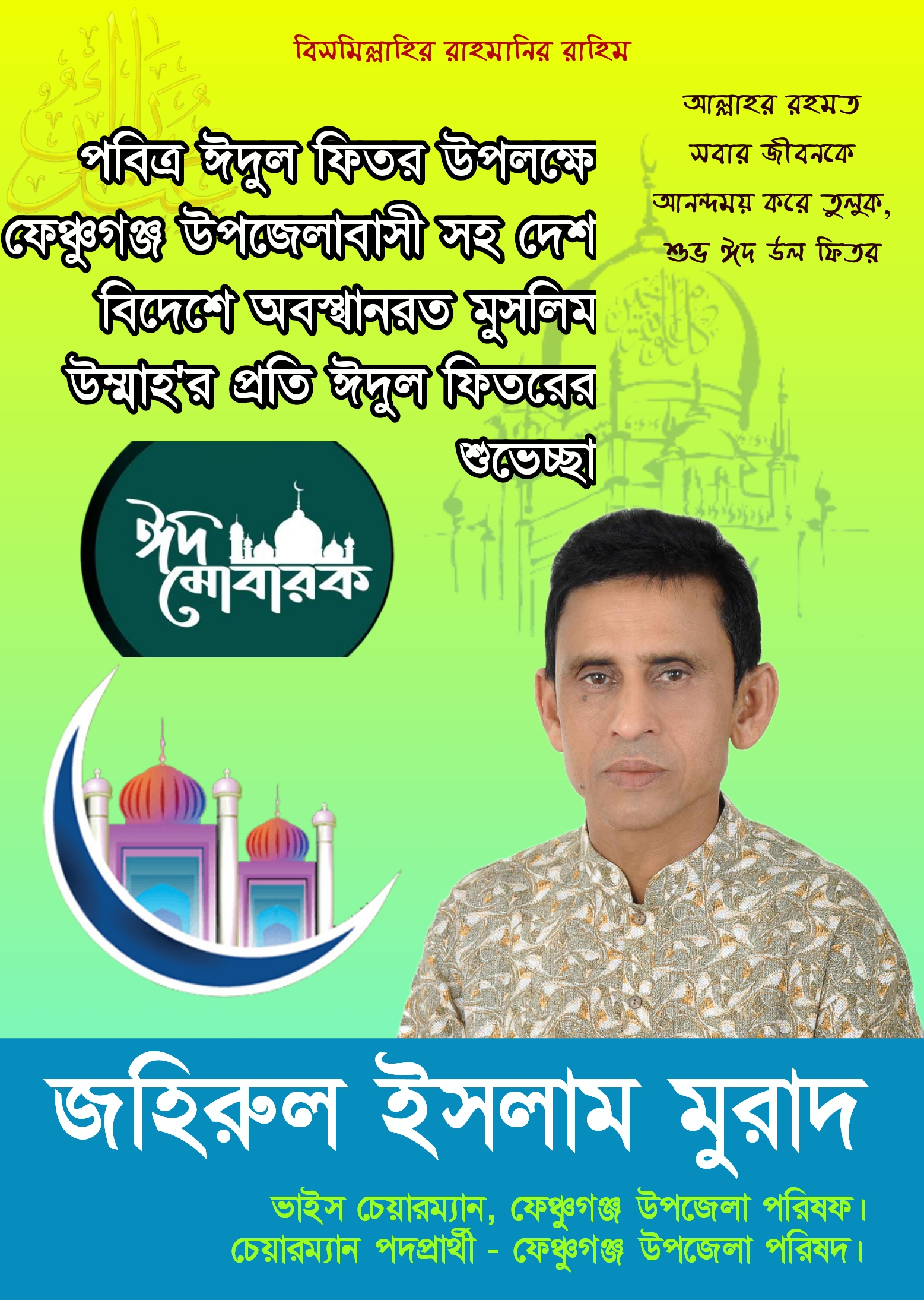 ফেঞ্চুগঞ্জবাসীকে পবিত্র ঈদুল ফিতরের শুভেচ্ছা জানিয়েছেন জহিরুল ইসলাম মুরাদ