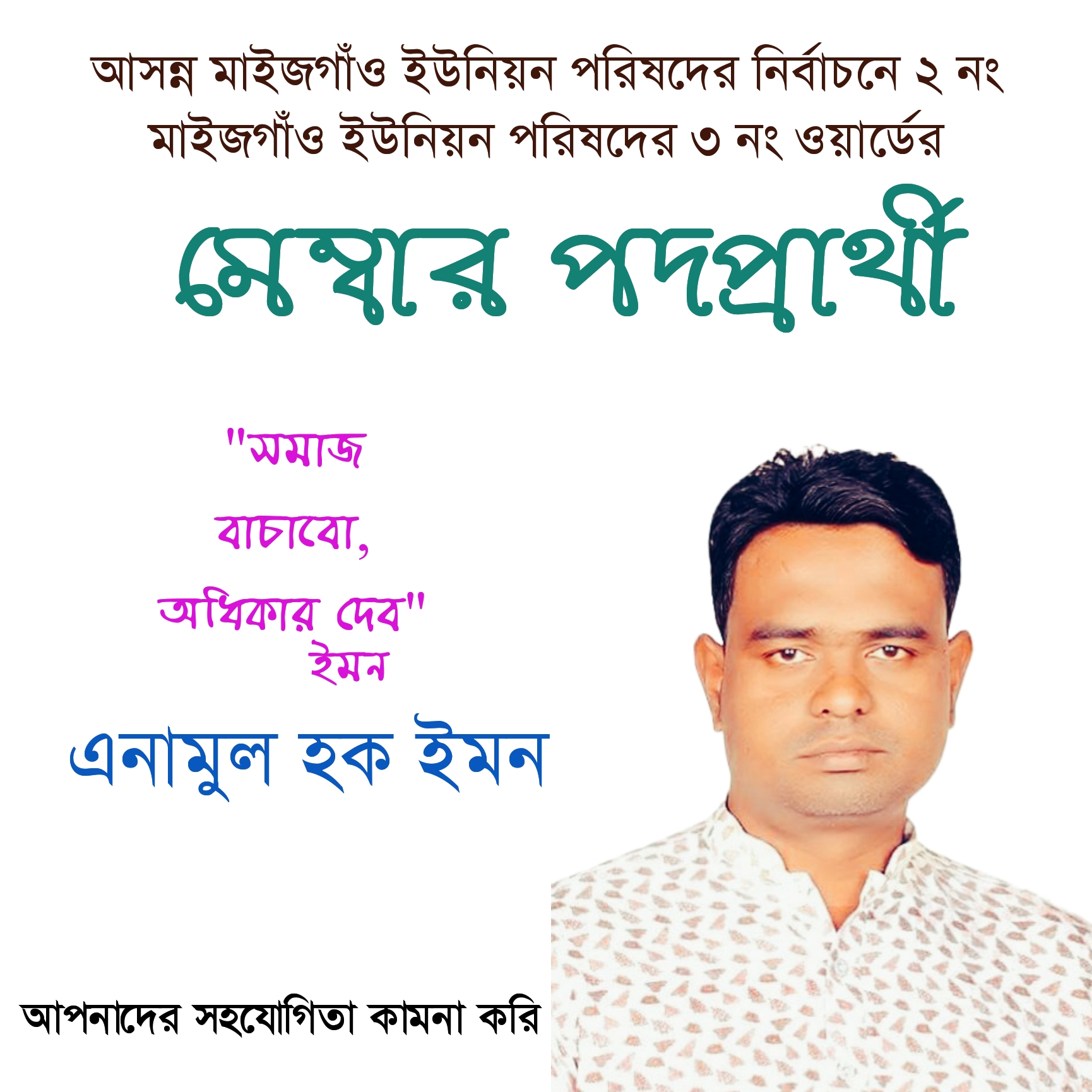 আরও জানা যায় একই প্রার্থী এমরান হোসেন মুমিন তিনি জানান (ঘুড়ি) আমারও বেশ কিছু পোষ্টার ছিড়ে ফেলা হয়েছে। বর্তমান ইউপি সদস্য আরমান হোসেন আনুরও কিছু পোষ্টার রাস্তায় ছেড়া অবস্থায় পাওয়া যায়। এছাড়া জানা গেছে ২ নং মাইজগাঁও ইউনিয়ন পরিষদের চেয়ারম্যান পদপ্রার্থী আওয়ামী লীগের মনোনীত জুবেদ আহমেদ চৌধুরী শিপুর ও বেশ কিছু পোষ্টার মাইজগাঁও ইউনিয়ন এর ৩ নং ওয়ার্ডের বিভিন্ন এলাকায় ছিড়ে ফেলা