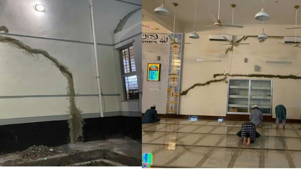 এছাড়া মসজিদের অজুখানা ও বাইরের দেয়ালেও ফাটল দেখা দিয়েছে।