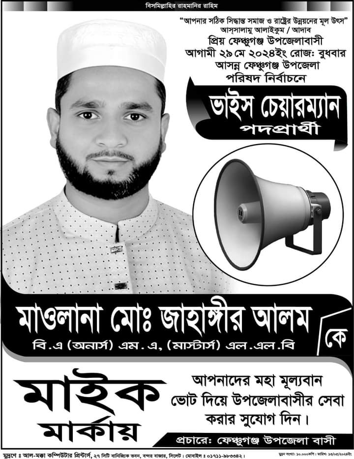 ফেঞ্চুগঞ্জ  উপজেলা পরিষদ নির্বাচনে ভাইস চেয়ারম্যান প্রার্থী জাহাঙ্গীর আলম  এর সমর্থনে ফেঞ্চুগঞ্জ উপজেলা তালামীযের মত-বিনিময়