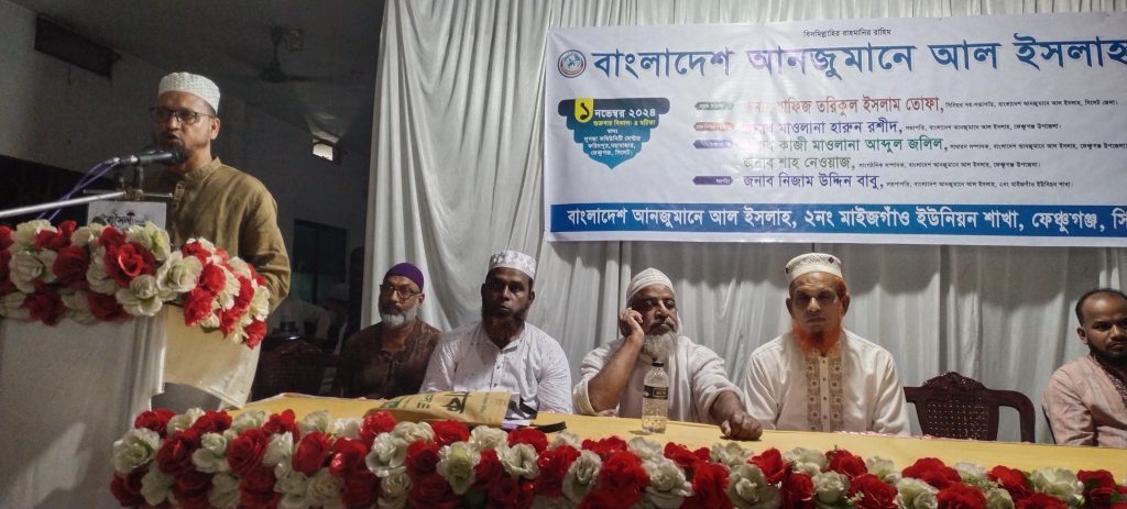 মাইজগাঁও ইউনিয়ন আল ইসলাহ সভাপতি নিজাম উদ্দিন বাবু’র সভাপতিত্বে ও সাধারণ সম্পাদক মাওলানা খলিলুর রহমানের সঞ্চালনায় প্রধান অতিথি হিসেবে বক্তব্য রাখছেন সংগঠনের সিলেট জেলা শাখার সিনিয়র সহ-সভাপতি হাফিজ তরিকুল ইসলাম তোফা। প্রধান নির্বাচন কমিশনার হিসাবে বক্তব্য রাখেন ফেঞ্চুগঞ্জ উপজেলা সভাপতি মাওলানা হারুনুর রশীদ, বিশেষ অতিথি হিসেবে বক্তব্য রাখেন ফেঞ্চুগঞ্জ উপজেলা আল ইসলাহ’র সাধারণ সম্পাদক মাওলানা কাজী আব্দুল জলিল, উপজেলা আল ইসলাহ সাবেক সভাপতি মো. নুরুল হুদা, উপজেলা আল ইসলাহ সাংগঠনিক সম্পাদক মো. শাহ নেওয়াজ, প্রচার ও প্রকাশনা সম্পাদক এম জি জাকারিয়া চৌধুরী, ঘিলাছড়া ইউনিয়ন আল ইসলাহ সভাপতি মাওলানা সৈয়দ মওসুফ আহমদ, ফেঞ্চুগঞ্জ উপজেলা পরিষদের সাবেক ভাইস চেয়ারম্যান মাওলানা জাহাঙ্গীর আলম মুজাহিদ, ফেঞ্চুগঞ্জ সদর ইউনিয়ন সভাপতি ক্বারী মিনহাজ উদ্দিন, উপজেলা আল ইসলাহর পাঠাগার সম্পাদক ও মাইজগাঁও ইউনিয়ন আল ইসলাহ র সাবেক সভাপতি বদরুল ইসলাম বেলাল, ঘিলাছড়া ইউনিয়ন আল ইসলাহ সাধারণ সম্পাদক মাওলানা আবুল বাশার, ফেঞ্চুগঞ্জ সদর ইউনিয়ন সাধারণ সম্পাদক আব্দুল ওয়াহিদ রূপন সহ উপজেলা ও মাইজগাঁও ইউনিয়ন আল ইসলাহ নেতৃবৃন্দ।
