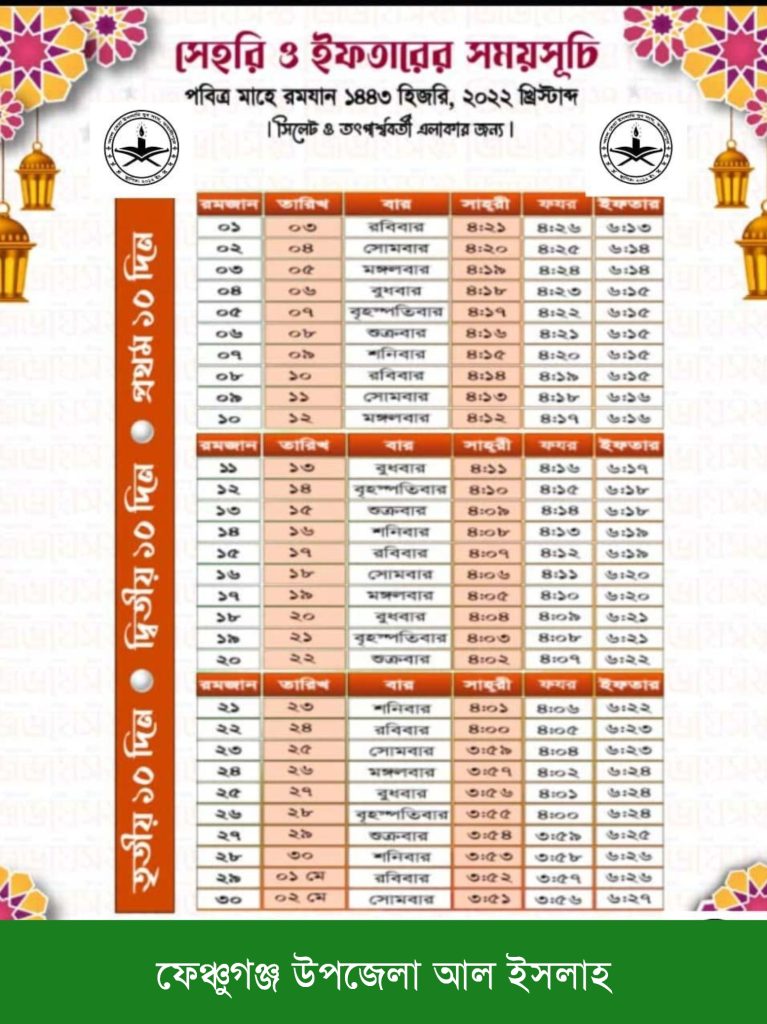 পবিত্র মাহে রমজান উপলক্ষে দেশ বিদেশে অবস্থানরত মুসলিম ভাইবোন সহ ফেঞ্চুগঞ্জ উপজেলাবাসীকে শুভেচ্ছা জানিয়েছেন ফেঞ্চুগঞ্জ উপজেলা আল ইসলাহ সভাপতি আলহাজ্ব মাওলানা হারুনুর রশীদ।