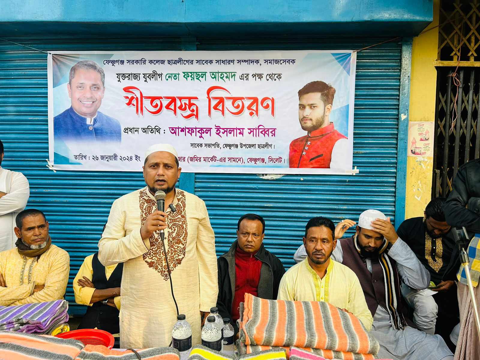 ফেঞ্চুগঞ্জ সরকারি কলেজ ছাত্রলীগের সাবেক সাধারণ সম্পাদক – যুক্তরাজ্য যুবলীগ নেতা ও সমাজসেবক ফয়ছল আহমেদের পক্ষ থেকে ২৬ শে জানুয়ারি শুক্রবার দুপুরে ফেঞ্চুগঞ্জ উপজেলার ফরিদপুর নয়াবাজারে এলাকার শতাধিক দরিদ্র মানুষের মধ্যে শীতবস্ত্র বিতরণ করা হয়।