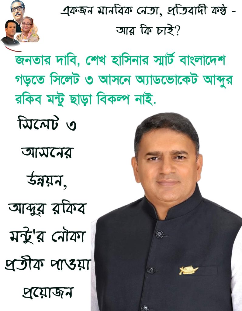 বাংলাদেশ অ্যাথলেটিক্স ফেডারেশনের সাধারণ সম্পাদক ও যুবলীগের কেন্দ্রীয় কার্যনির্বাহী সদস্য – অলিম্পিক এসোসিয়েশন এর সদস্য এবং সাবেক সহকারী এটর্নি জেনারেল এডভোকেট আব্দুর রকিব মন্টু সিলেট ৩ আসনে ইতমধ্যে নৌকা প্রতীক পেতে ৩ বার মনোনয়ন জমা দিয়েছেন। কিন্তু মনোনয়ন না পেলেও দলীয় সিদ্ধান্ত কে সম্মান জানিয়ে প্রয়াত সাংসদ মাহমুদ উস সামাদ চৌধুরী, বর্তমান সংসদ সদস্য হাবিবুর রহমান এর নির্বাচনী কার্যক্রমে ঠিকই ভূমিকা রেখেছেন।