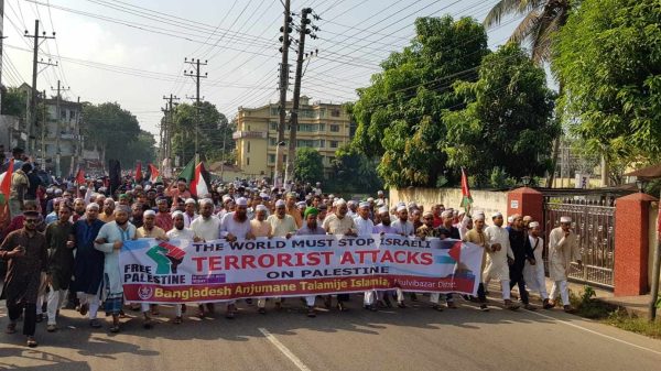 ২৩, শুক্রবার, বাদ জুম’আ বাংলাদেশ আনজুমানে তালামীযে ইসলামিয়া মৌলভীবাজার জেলা শাখার উদ্যোগে ফিলিস্তিনে সন্ত্রাসবাদী ইসরায়েলের বর্বর হামলার প্রতিবাদে বিক্ষোভ মিছিল ও পরবর্তী সমাবেশ করা হয়। মৌলভীবাজার জেলা শাখার সভাপতি মো:আলী