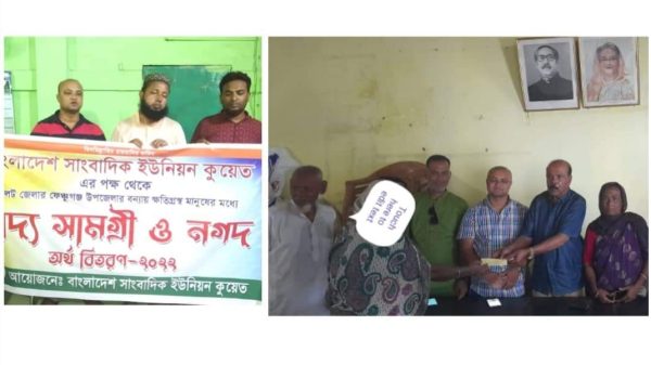 বাংলাদেশ সাংবাদিক ইউনিয়ন কুয়েত’র উদ্যোগে ফেঞ্চুগঞ্জ বন্যা ক্ষতিগ্রস্ত ঘিলাছড়া ও ফেঞ্চুগঞ্জ সদর ইউনিয়নের ১১০ পরিবারের মধ্যে খাদ্য সামগ্রী ও নগদ অর্থ বিতরণ করা হয় । গতকাল ৬ জুলাই বাংলাদেশ সাংবাদিক