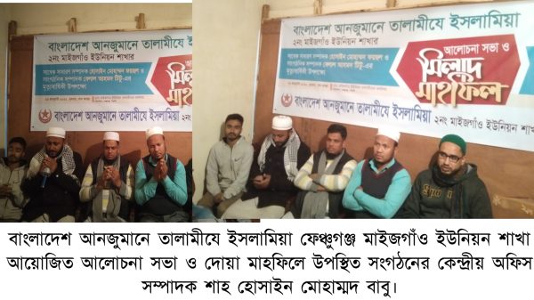 ফেঞ্চুগঞ্জে তালামীয নেতা ফয়সল – টিটু’র স্বরণসভা ও দোয়া মাহফিল বাংলাদেশ আনজুমানে তালামীযে ইসলামিয়ার কেন্দ্রীয় অফিস সম্পাদক শাহ হোসাইন মোহাম্মদ বাবু বলেছেন, তালামীয একটি আদর্শবাহী সংগঠন। তালামীয কর্মীরা কখনো