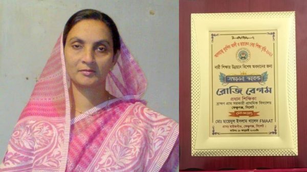 ‘খুরশীদ আলী ও ছায়ারুন নেছা এডুকেশন ট্রাস্ট’র সম্মাননা পেলেম ফেঞ্চুগঞ্জের শিক্ষিকা রোজী বেগম