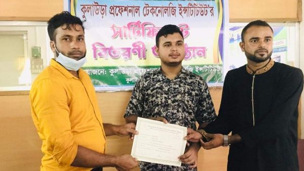 গনপ্রজাতন্ত্রী বাংলাদেশ সরকার বাংলাদেশ কারিগরি শিক্ষা বোর্ড কর্তৃক অনুমোদিত (কোড নং-৬২০৪০) কুলাউড়া প্রফেশনাল টেকনোলজি ইন্সটিটিউট এর সার্টিফিকেট বিতরণী অনুষ্ঠান অনুষ্ঠিত হয়েছে। ২৩ সেপ্টেম্বর বৃহস্পতিবার সকাল ১১ঃ৩০ ঘটিকায় সার্টিফিকেট বিতরণ অনুষ্ঠান