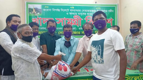 করোনা মহামারী ও লকডাউনে বিপর্যস্ত সিলেটে বসবাসরত দোয়ারাবাজার উপজেলার গরীব অসহায় মানুষের মধ্যে দোয়ারা বাজার সমিতি ল এর খাদ্য সামগ্রী ও দোয়ারা বাজার সমিতি’র লোগো সম্বলিত মাস্ক বিতরন করা হয়েছে।
