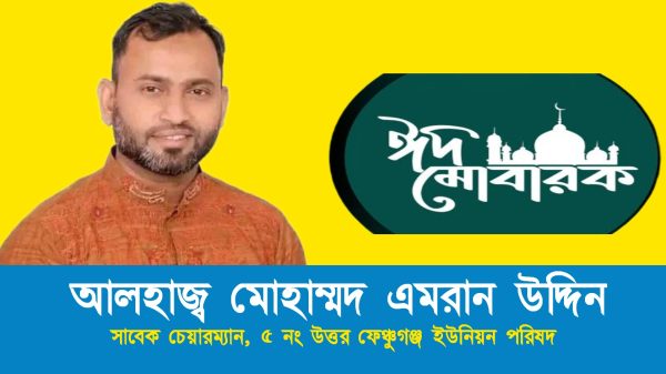 “ঈদ মোবারক” পবিত্র ঈদুল ফিতর উপলক্ষে ফেঞ্চুগঞ্জ উপজেলাবাসী সহ দেশ বিদেশের অবস্থানরত মুসলিম উম্মাহ’র প্রতি ঈদের শুভেচ্ছা জানিয়েছেন – ফেঞ্চুগঞ্জ উপজেলার ৫ নং উত্তর ফেঞ্চুগঞ্জ ইউনিয়নের সাবেক সফল চেয়ারম্যান ও