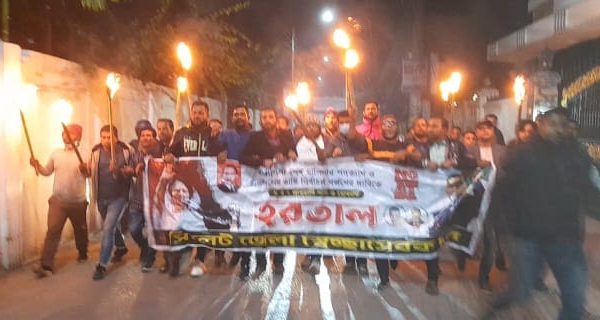 ৬ ও ৭ জানুয়ারি হরতালের সমর্থনে সিলেট জেলা স্বেচ্ছাসেবক দলের মশাল মিছিল