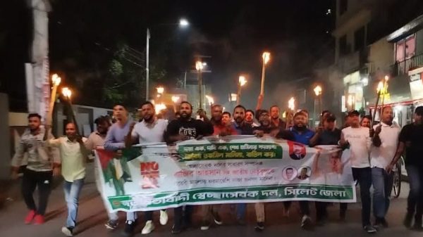সিলেট নগরীর প্রান কেন্দ্র জিন্দাবাজারে ৯ম দফা অবরোধের সমর্থনে আজ শনিবার রাতে সিলেট জেলা স্বেচ্ছাসেবক দলের উদ্যোগে মশাল মিছিল ও বিক্ষোভ সমাবেশ অনুষ্ঠিত হয়। মিছিলে নেতৃত্ব দেন সিলেট জেলা