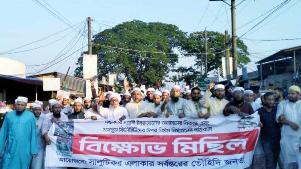 বিশ্বনাথের খাজাঞ্চীতে ফিলিস্তিনি মুসলমানদের উপর ইসরায়েলের হামলার প্রতিবাদে ও আল আকসা মসজিদ রক্ষার দাবীতে বিক্ষোভ মিছিল ও প্রতিবাদ সমাবেশ করেছে সীরাতুন্নবী( সাঃ) খাজাঞ্চী ইউনিয়ন ও তাওহীদি জনতা। ২০ শে অক্টোবর