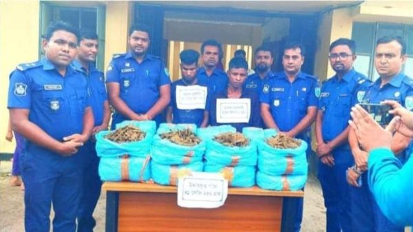 কুলাউড়ায় ৪১ কেজি গাঁজাসহ শালা-দুলাভাই কে আটক করা হয়েছে জব্দকৃত গাঁজাসহ আটককৃতদের কাছ থেকে একটি প্রাইভেট কার উদ্ধার করেছে পুলিশ। মৌলভীবাজারের কুলাউড়া উপজেলার ভাটেরা রেলওয়ে স্টেশন সংলগ্ন এলাকা থেকে
