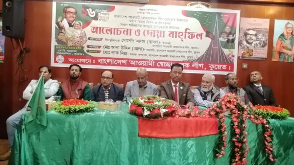 বাংলাদেশ আওয়ামী স্বেচ্ছাসেবক লীগ কুয়েতের উদ্যোগে ১৬ ই ডিসেম্বর মহান বিজয় দিবস ও জাতির জনক বঙ্গবন্ধু শেখ মুজিবুর রহমান সহ সকল শহীদদের আত্মা মাগফেরাত কামনায় শুক্রবার কুয়েত ফরওয়নিয়া দোহি প্যালেস