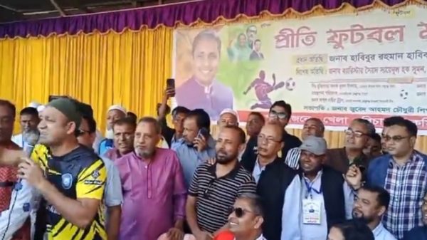 শনিবার ফেঞ্চুগঞ্জে অনুষ্ঠিত ব্যারিস্টার সুমন ফুটবল একাডেমি এবং এমপি হাবিব একাদশের মধ্যকার খেলা অনুষ্ঠিত হয়। খেলার শুরুতেই স্বাগত বক্তব্যে ব্যারিস্টার সুমন বলেন, শুধু খেলতে আসিনি ফেঞ্চুগঞ্জের সাথে আত্মীয়তা করতে এসেছি।