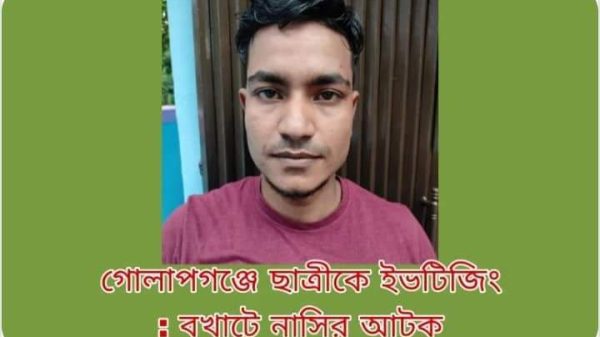 গোলাপগঞ্জে ইভটিজিং এর দায়ে এক যুবককে আটক করেছে পুলিশ। সে উপজেলার বাঘা ইউনিয়নের পরগনা বাজার কান্দিগ্রাম এলাকার মৃত মুহিব আলীর পুত্র নাসির উদ্দিন (৩০)। পুলিশ জানায়, গোলাপগঞ্জ চোমুহনী থেকে