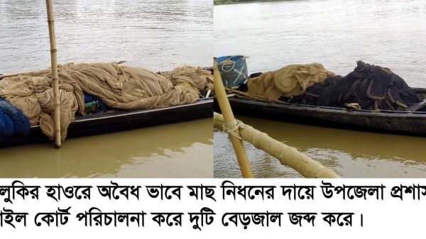 হাকালুকির হাওরে মোবাইল কোর্ট পরিচালনা,৭ লক্ষ টাকার জাল দুটি জব্দ