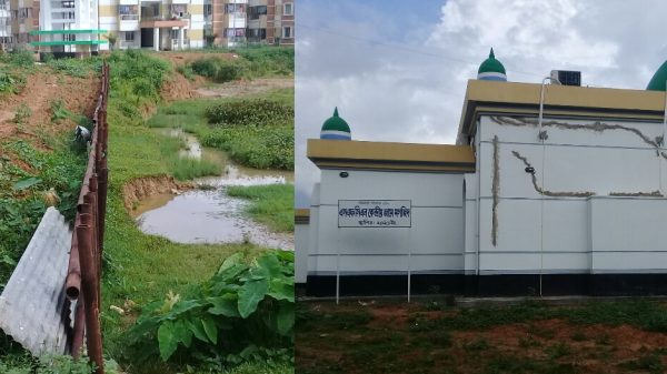 সিলেটের ফেঞ্চুগঞ্জ উপজেলায় শাহজালাল সারকারখানায় নব নির্মিত দৃষ্টি নন্দন মসজিদ শাহজালাল সারকারখানা মসজিদের দেয়ালে ফাটল দেখা দিয়েছে। শনিবার মাগরিবের নামাজ আদায়ের সময় মুসল্লিরা বিষয়টি লক্ষ্য করেন। এতে শুরু হয় নির্মাণ