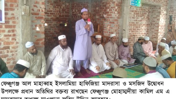 সিলেটের ফেঞ্চুগঞ্জের দক্ষিণ ফেঞ্চুগঞ্জ মাইজগাঁও আল মাহাব্বাহ হাফিজিয়া মাদরাসার জামে মসজিদের উদ্বোধন আজ (শুক্রবার) ২ সেপ্টেম্বর জুমার নামাজ ও নামজ শেষে ইসলামি আলোচনা এবং মিলাদ মাহফিল দোয়ার মাধ্যমে অনুষ্ঠিত হয়।