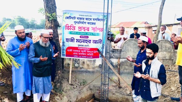 সিলেটের ফেঞ্চুগঞ্জের ঐতিহ্যের ধারক প্রায় বিলীন হয়ে যাওয়া এক সময়ের জেটিঘাট বাজারের মসজিদের পুণ নির্মাণ কাজে এগিয়ে এসেছেন যুক্তরাজ্য প্রবাসী হাজী মনোহর আলী ও হাজী মখদ্দছ আলী কল্যাণ ট্রাস্ট। ৩০