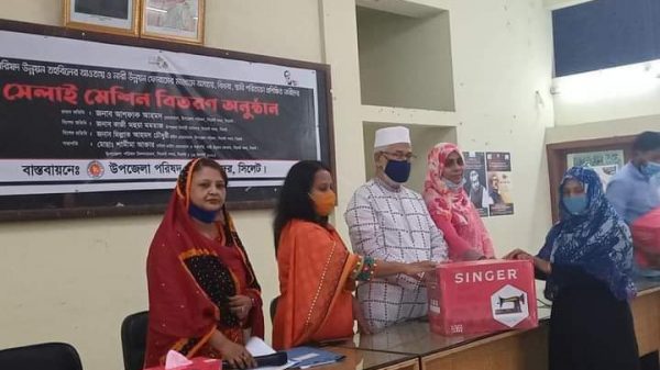 সিলেট সদর উপজেলা পরিষদের পক্ষ থেকে নারী উন্নয়ন ফোরামের উদ্যোগে অদ্য ১৯-০৮-২০২১ইং বৃহস্পতিবার অসহায় গরীব, বিধবা, স্বামী পরিত্যক্তা, প্রশিক্ষন প্রাপ্ত মহিলাদের মাঝে সেলাই মেশিন বিতরন করা হয়। উপজেলা পরিষদের হলরুমে