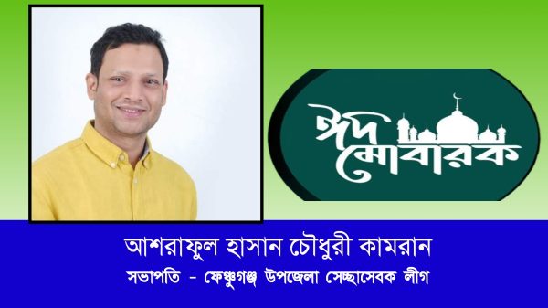ঈদ মোবারক পবিত্র ঈদুল ফিতর উপলক্ষে ফেঞ্চুগঞ্জ উপজেলাবাসী সহ দেশ বিদেশের অবস্থানরত সকল মুসলিম উম্মাহ’র প্রতি ঈদুল ফিতরের শুভেচ্ছা জানিয়েছেন ফেঞ্চুগঞ্জ বাজার বনিক সমিতির পক্ষে বনিক সমিতির সাধারণ সম্পাদক উবায়েদুল্লাহ