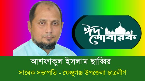 ঈদ মোবারক পবিত্র ঈদুল ফিতর উপলক্ষে ফেঞ্চুগঞ্জ উপজেলাবাসী সহ দেশ বিদেশের অবস্থানরত সকল মুসলিম উম্মাহ’র প্রতি ঈদুল ফিতরের শুভেচ্ছা জানিয়েছেন ফেঞ্চুগঞ্জ উপজেলা ছাত্রলীগের সাবেক সভাপতি ও সমাজসেবক আশফাকুল ইসলাম ছাব্বির।