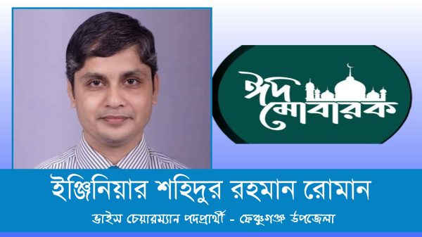 “ঈদ মোবারক” পবিত্র ঈদুল ফিতর উপলক্ষে ফেঞ্চুগঞ্জ উপজেলাবাসী সহ দেশ বিদেশের অবস্থানরত মুসলিম উম্মাহ’র প্রতি ঈদের শুভেচ্ছা জানিয়েছেন – ফেঞ্চুগঞ্জ উপজেলা পরিষদের সাবেক অস্থায়ী চেয়ারম্যান ইঞ্জিনিয়ার শহিদুর রহমান রোমান। তিনি
