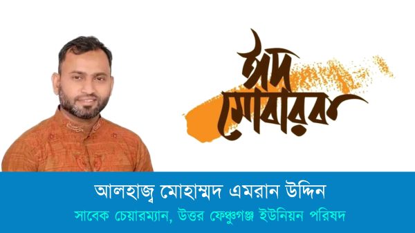ঈদ মোবারক পবিত্র ঈদুল ফিতর উপলক্ষে ফেঞ্চুগঞ্জ উপজেলাবাসী সহ দেশ বিদেশের অবস্থানরত সকল মুসলিম উম্মাহ’র প্রতি ঈদুল ফিতরের শুভেচ্ছা জানিয়েছেন বাংলাদেশ আনজুমানে আল ইসলাহ’র সিলেট জেলা’র যুগ্ন সাধারণ সম্পাদক ও