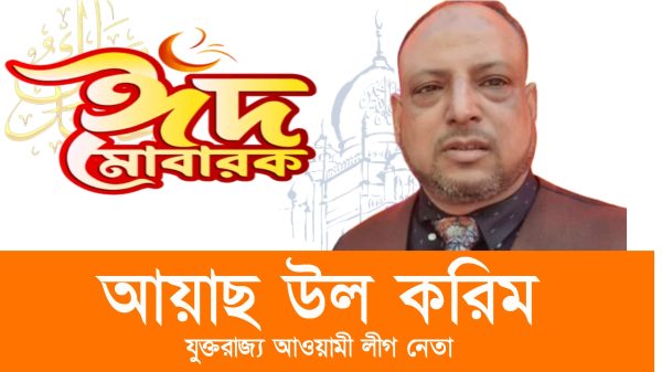 “ঈদ মোবারক” পবিত্র ঈদুল ফিতর উপলক্ষে ফেঞ্চুগঞ্জ উপজেলাবাসী সহ দেশ বিদেশের অবস্থানরত মুসলিম উম্মাহ’র প্রতি ঈদের শুভেচ্ছা জানিয়েছেন যুক্তরাজ্য আওয়ামী লীগ নেতা আয়াছ উল করিম। তিনি এক শুভেচ্ছা বার্তায় উল্লেখ