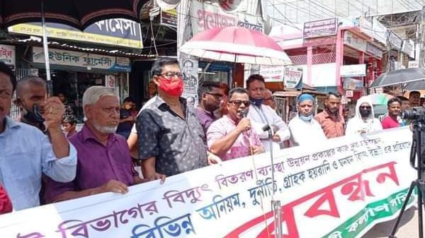 বিদ্যুৎ বিভ্রাটসহ কুলাউড়া বিদ্যুৎ বিতরণ বিভাগের অনিয়ম দুর্নীতির বিরুদ্ধে মানববন্ধন