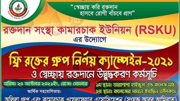 রাজনগরের কামারচক ইউনিয়নে ফ্রি রক্তের গ্রুপ নির্নয় ক্যাম্পেইন অনুষ্ঠিত