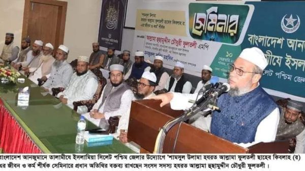 আল্লামা ফুলতলী (র.) ধর্ম-বর্ণ নির্বিশেষে সকলের অভিভাবক ছিলেন —মাওলানা হুছামুদ্দীন চৌধুরী ফুলতলী এমপি বাংলাদেশ আনজুমানে আল ইসলাহ’র মুহতারাম সভাপতি ও ধর্ম মন্ত্রণালয় সম্পর্কিত সংসদীয় স্থায়ী কমিটির চেয়ারম্যান হযরত মাওলানা হুছামুদ্দীন