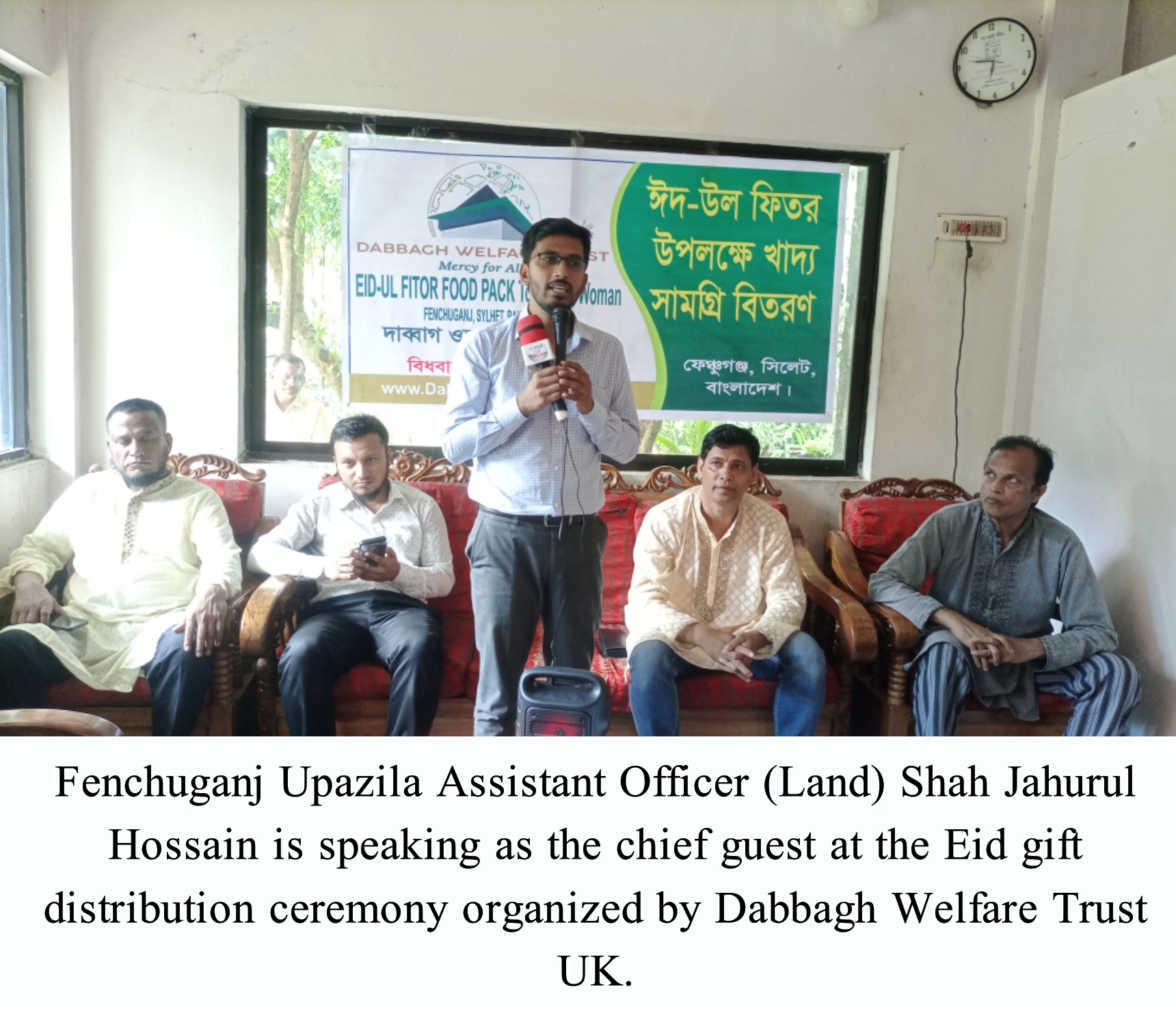 In Fenchuganj, Sylhet, April 4, Thursday morning, Eid gifts were distributed to underprivileged widows and disabled people under the initiative of international organization Dabbagh Welfare Trust UK in Faridpur upazila.